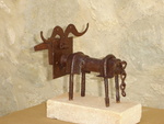 2007dierfiguur gemaakt van oud-ijzeren voorwerpen, zoals schakel van een ketting. Met grijze metalliclak afgewerkt.