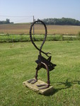 2008Uil gemaakt van oud-ijzeren voorwerpen zoals een eg, rieken, wielen van een kinderwagen, en kettingen. Na het ontroesten van de onderdelen, heeft zich op het totale werk een nieuwe roestlaag gevormd. Daarna is het met een speciale olie behandeld die voor een mooi patin zorgt.