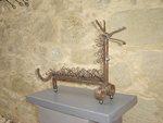 2011Hond gemaakt van oud ijzeren voorwerpen van de Franse campagne. Alles is blank geslepen maar kan ook opnieuw roesten en voorzien worden van een olielaag.
